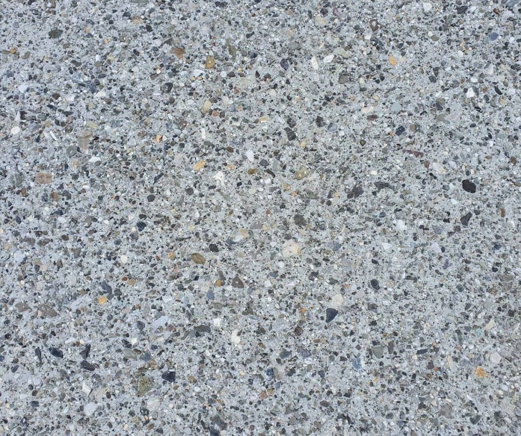 Ko beton doseže pravo stopnjo vezave, se zgornja plast ročno ali strojno spere, da se razkrijejo kamenčki (agregat).
