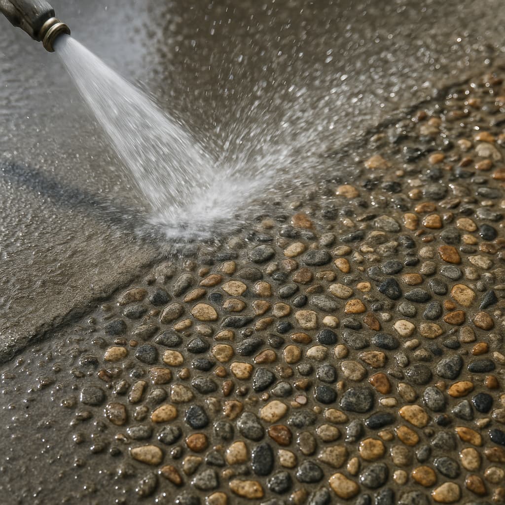 Čas obdelave je ključen – prehitro pranje izpostavi premalo agregata, prepozno pa onemogoči izvedbo.